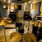 Sala de ensaio de 21m². Ideal para bandas com até 5 integrantes.